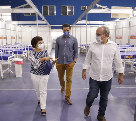 Em visita ao Hospital de Campanha Padre Pedro Balzi na manhã desta segunda-feira (18), o prefeito Firmino Filho anunciou para amanhã o início gradual das atividades da unidade de saúde, que será referência para os encaminhamentos de pacientes positivos para a Covid-19 e possui 86 leitos, sendo quatro de estabilização e os demais de internação. Durante a visita do prefeito, o padre Chiquinho e o pastor Denisard Júnior realizaram uma bênção do Hospital de Campanha Padre Pedro Balzi.