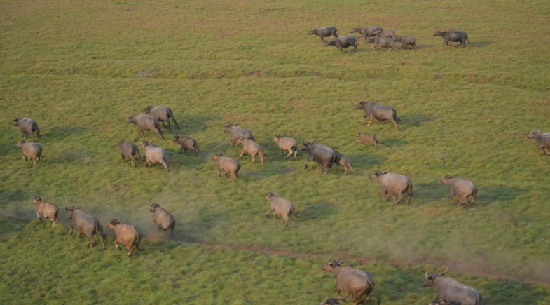 Sem predadores naturais, os búfalos causam impactos severos na fauna e na flora. Um dos animais mais afetados é o cervo-do-pantanal, considerado vulnerável à extinção. “A gente não tem um único registro de cervo junto com o búfalo. Eles estão empurrando e confinando os cervos em determinados pontos”, relatou Wilhan.