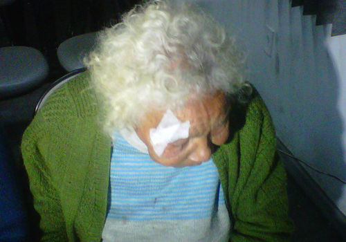 Para se defender do criminoso, a idosa desferiu pontapés e vários golpes com tamanco no jovem, que fugiu do local. Porém, a reação, que não é aconselhada pela polícia, fez com que ela fosse atingida com um golpe de faca acima do olho direito. Os vizinhos ouviram os gritos e socorreram a senhora de 92 anos, que sofreu apenas um corte leve.