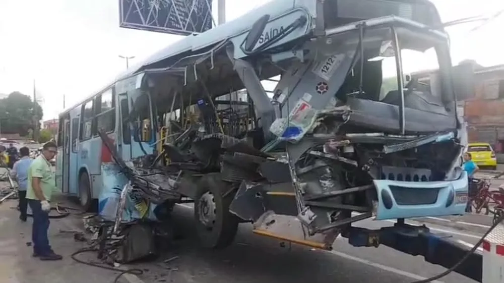 Uma idosa de 87 anos morreu após ter o corpo esmagado em acidente entre um ônibus do transporte público de Fortaleza e um caminhão, na Avenida Godofredo Maciel, nesta terça-feira (5). Um homem teve o braço decepado e outras três pessoas ficaram com ferimentos leves, incluindo um bebê de dois meses. Todos passageiros do ônibus.
