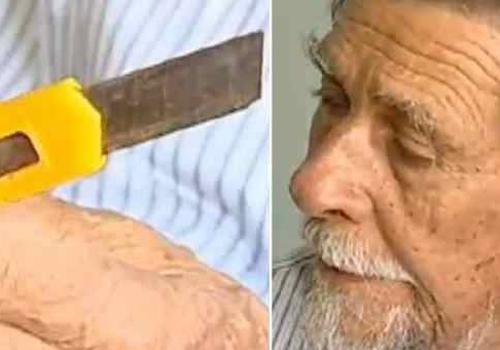 Com a ajuda de um estilete, ele perfurou o local. Durante o procedimento que fez em casa há oito meses, retirou apenas a inflamação e ainda precisa de cirurgia.