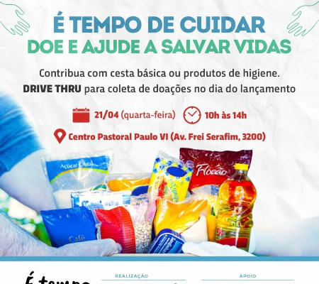 Nesta quarta-feira (21) acontece o lançamento virtual da Ação Solidária “É Tempo de Cuidar”. A cerimônia será a partir das 11h30, no auditório do Centro Pastoral Paulo VI, e poderá ser acompanhada por todas as plataformas digitais do Governo do Piauí, da TV Antares (2.1), e canais do YouTube da Arquidiocese de Teresina (Programa Em Tuas Mãos), TV Nestante e Cáritas Brasileira. O evento será restrito às lideranças da igreja e autoridades estaduais, respeitando todos os protocolos sanitários de prevenção à Covid-19.