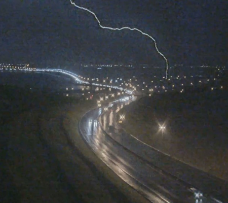 Câmeras do Departamento de Estradas e Rodagem do DF (DER) flagraram o momento em que um raio cai próximo à Ponte JK, no Lago Sul, na noite desta quinta-feira (2). As informações são do G1.