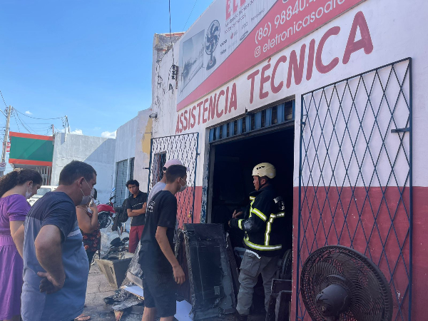 Um incêndio atingiu uma loja de assistência técnica de eletrônicos no início da tarde desta segunda-feira (19), na rua Rui Barbosa, no bairro São Joaquim, na zona Norte de Teresina. O Corpo de Bombeiros foi acionado e conteve as chamas, que provocaram um grande prejuízo material no local.