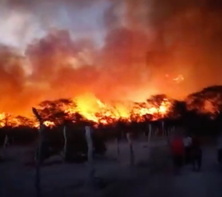 Um incêndio de grandes proporções atinge desde sábado (26/09) a região da BR-020 no município de Monsenhor Hipólito, na região da cidade de Picos. O fogo atingiu as localidades Morrinhos e Alto da Areia e está se propagando rapidamente. As informações são do Riachão Net.