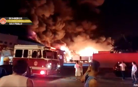 Um incêndio de grandes proporções destruiu um complexo de galpões na rua São Miguel dos Campos, 793, na Vila Barros, em Guarulhos. O local é bem próximo ao aeroporto internacional, em Cumbica.