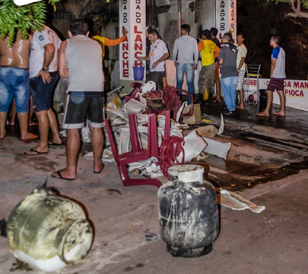 "O proprietário do estabelecimento disse que acendeu o forno para fritar coxinhas quando a mangueira rompeu e o gás entrou em contato com o fogo lhe atingindo e se espalhando rapidamente no interior do comércio", relatou um dos brigadistas ao Blog.
