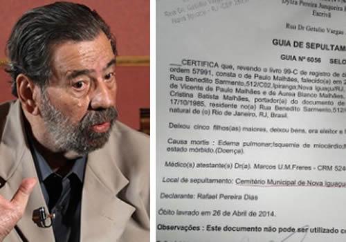 A filha do coronel Carla Malhães, de 51 anos, confirmou que o pai tinha problemas cardíacos, mas não deu detalhes sobre a certidão de óbito:
