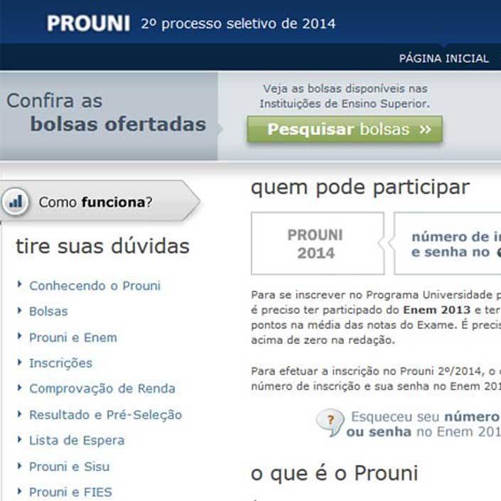 Site do Prouni já tem aberta a pesquisa das bolsas disponíveis | Foto: Reprodução