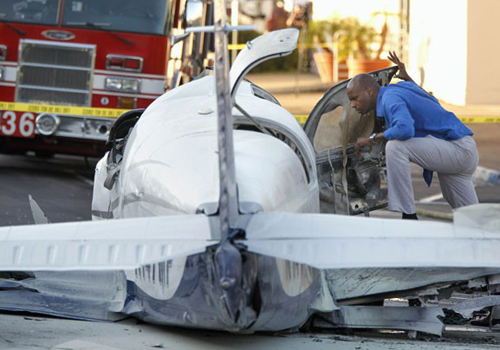 O avião pegou fogo após a queda, mas ninguém foi atingido pelo impacto. Segundo as autoridades, o avião era um Mooney M-20L de 1988.