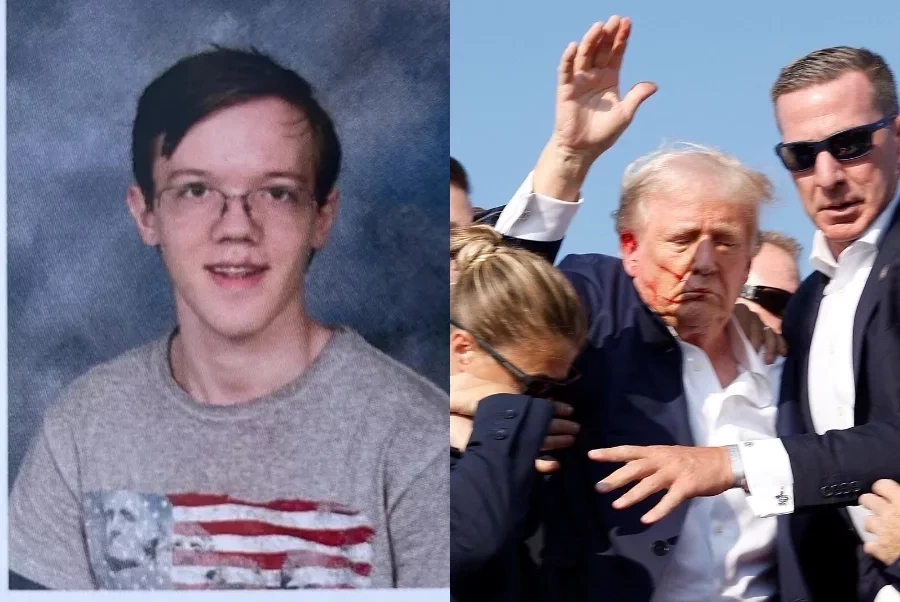 Montagem mostra Thomas Matthew Crooks e atentado contra Donald Trump | Foto: Montagem/MeioNews