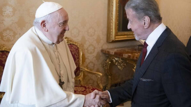 Ator Sylvester Stallone tem encontro com o Papa Francisco no Vaticano