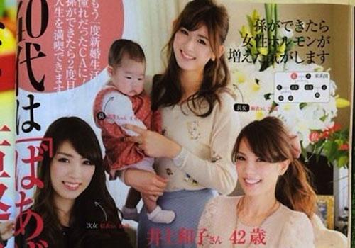 Kazuko Inoue é uma mulher fascinante de 42 anos, que já venceu concursos de beleza no ano passado. Ela aparece junto de suas duas filhas e de seus três netos, mostrando que está em plena forma.