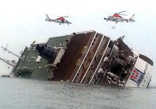 Fotos divulgadas pela TV coreana mostraram a balsa adernada em mais de 45 graus, sob uma nuvem de helicópteros. Os 325 estudantes a bordo do ferry realizavam uma excursão à ilha de Jeju, um dos principais pontos turísticos da Coreia do Sul e conhecida como o Havaí sul-coreano.