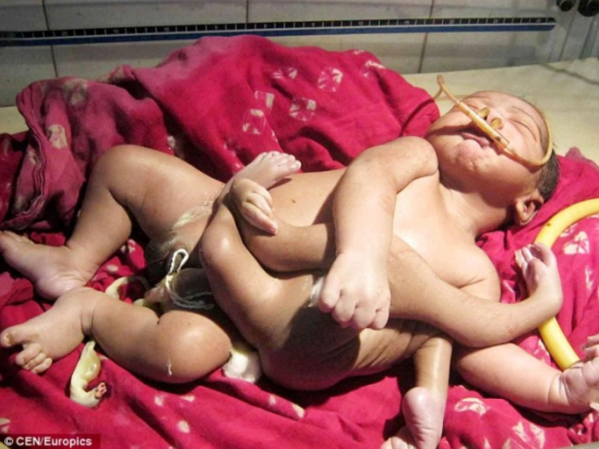 Bebê, apelidado de “menino Deus”, nasce com 4 pernas e 4 braços na Índia