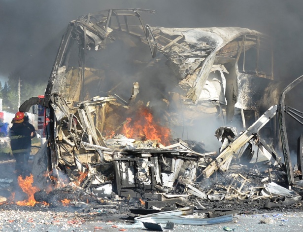 A maioria das vítimas morreu incinerada uma vez que os dois veículos se incendiaram depois do impacto, declarou à imprensa governador da província, Francisco Pérez.