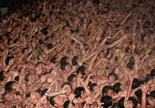 À medida que a Shin-Otoko entra, a multidão de milhares de pessoas vai em sua direção. Ao chegarem, água gelada é jogada sobre eles, o que não só provoca um vapor misterioso vindo da massa de corpos, mas também é feito para acalmar e tentar deixar os membros ansiosos.
