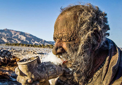 Além da sujeira que forma grossas camadas de crosta em sua pele e barba, o homem também é conhecido na região por gostar de fumar charuto contendo esterco de animais que pastam na região.