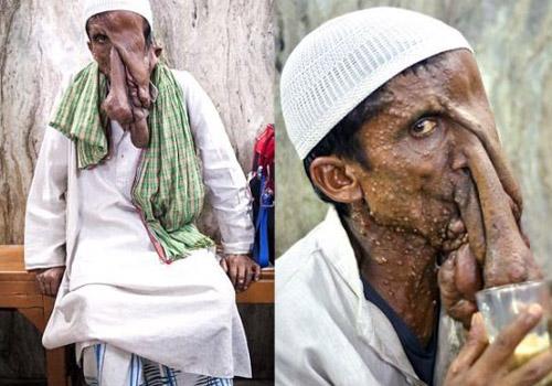 O homem de 50 anos de idade, que sofre de neurofibromatose, o que significa que ele tem um alto risco de crescimento de tumores, se baseia em sua aparência para poder ganhar a vida mendigando. Assim, ele rejeitou a oferta de cirurgiões para tentar financiar o ?grande dia? (casamento) de Rasheeda, sua filha de 20 anos