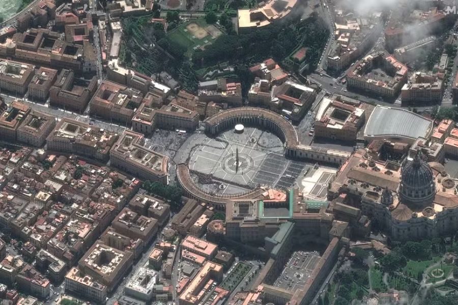 As fotos, divulgadas pela empresa Maxar, mostram a multidão se formando desde a escadaria da Basílica de São Pedro, atravessando toda a praça e contornando as arcadas rumo às ruas adjacentes de Roma. Segundo autoridades do Vaticano, entre 11h e 19h30, quase 20 mil fiéis passaram diante do caixão com o corpo do pontífice.