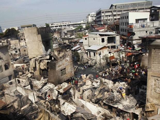 Fogo destrói favela nas Filipinas e mil famílias ficaram desalojadas
