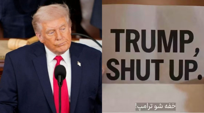 Ao longo da produção, o presidente norte-americano aparece fazendo ameaças ao Irã, em linha com declarações que vem publicando em suas redes sociais durante o conflito. Em seguida, um bilhete supostamente enviado pelo regime iraniano é entregue com a mensagem "Trump, shut up", traduzida para o português como “Trump, cale a boca”.