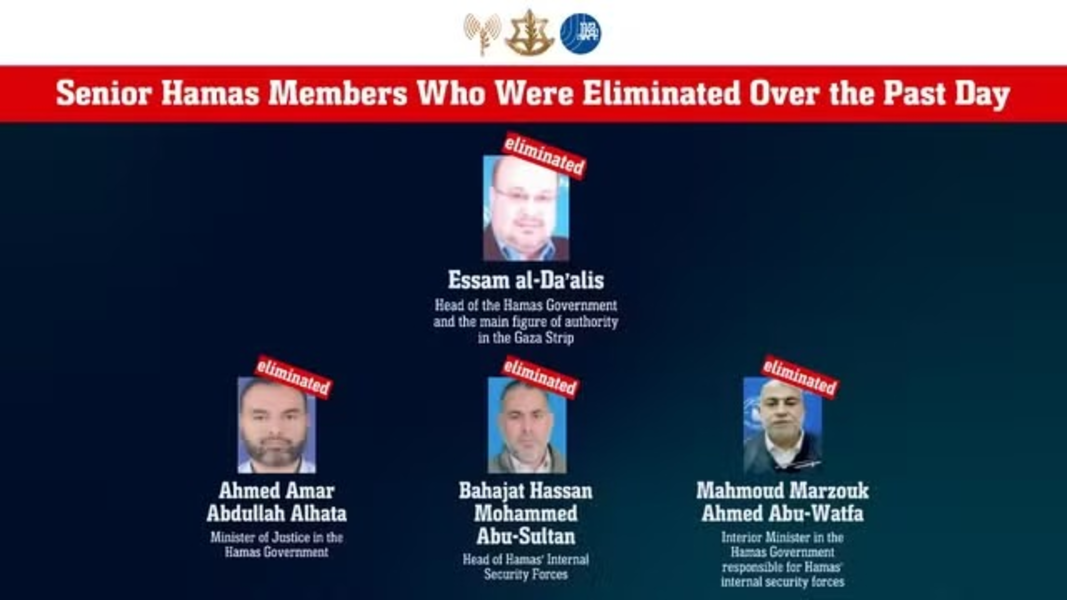 A IDF afirmou que há "alta probabilidade" de outros três membros do Hamas também estarem mortos. Entre eles estão Mahmoud Marzouk Ahmed Abu-Watfa, Ministro de Assuntos Internos e responsável pelas Forças de Segurança Interna do Hamas, Bahajat Hassan Mohammed Abu-Sultan, chefe das Forças de Segurança Interna, e Ahmed Amar Abdullah Alhata, Ministro da Justiça, todos envolvidos em atividades terroristas.