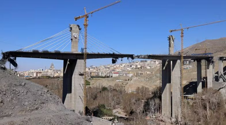 Ponte B1, que liga cidades de Teerã e Karaj, no Irã, que foi bombardeada em abril de 2026 | Foto: Atta Kenare/AFP