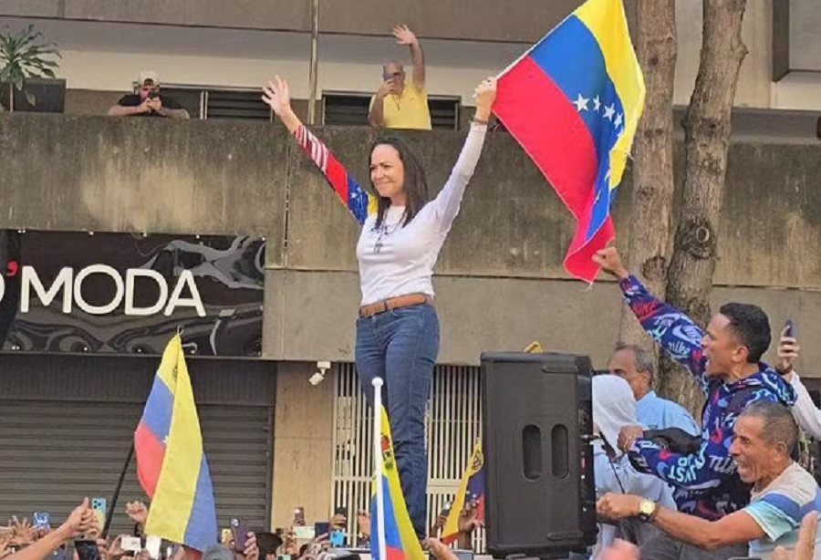 De acordo com o partido oposicionista Comando ConVzla, membros do regime Maduro interceptaram violentamente a líder enquanto ela era transportada em motos. "María Corina foi interceptada violentamente ao sair da concentração em Chacao", publicou a organização em uma rede social.