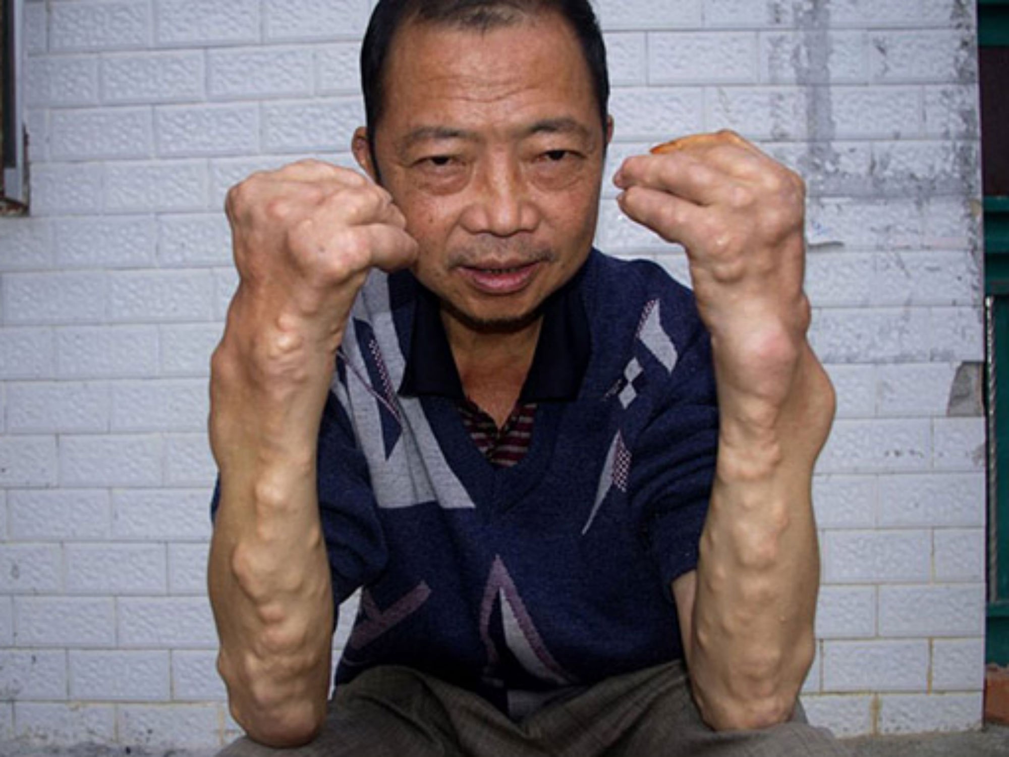 Moradores da vila que foram consumindo água e plantações contaminadas durante anos, agora estão sofrendo de ostealgia - uma dor associada com uma condição anormal nos ossos - e incontrolável inchaço nos membros. Um morador chamado Huang Xuqin (vide foto) ficou paralisado por cinco anos.