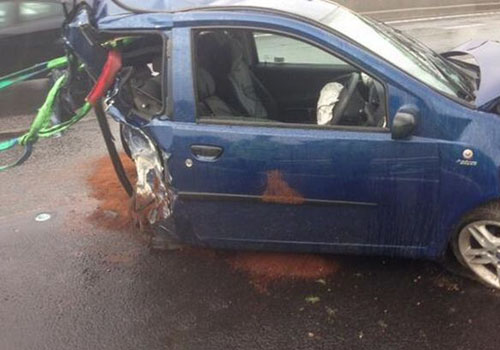 A foto postada por na internet mostrou os danos chocantes do Golf. "Felizmente apenas pequenas lesões. Dois bons samaritanos pararam e deram os primeiros socorros - obrigado", disse o usuário.