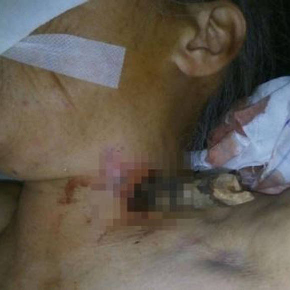 ?A senhora estava trabalhando na lavoura quando um galho de uma ?rvore se soltou e entrou em seu pesco?o como uma flecha: ?N?o foi muito doloroso, mas eu podia sentir que estava profundo. Certamente profundo ao ponto deu n?o poder puxar e retirar?, disse.