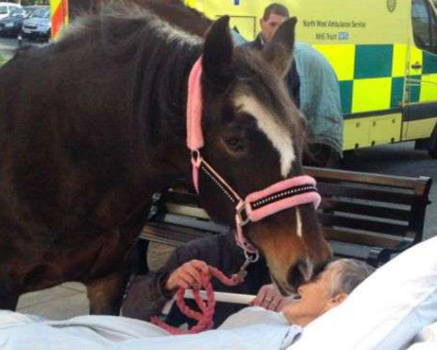 "Ela chamou gentilmente por um dos cavalos, e ele foi até ela e abaixou sua cabeça carinhosamente e encostou em seu rosto", disse a enfermeira Gail Taylor.