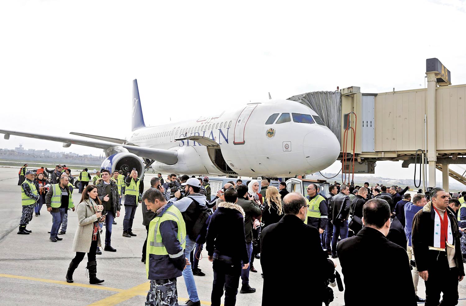 Os ministros dos Transportes e do Turismo viajaram no Airbus A320 da empresa nacional Syrian Air, que decolou da capital com um grupo de jornalistas convidados pelo ministério da Informação.