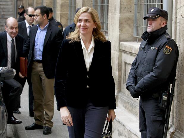 Aparentando tranquilidade, a princesa de 48 anos, filha mais nova do rei Juan Carlos, entrou no tribunal na ilha de Maiorca sem conversar com a imprensa. As acusações são relacionadas a atividades do marido de Cristina, o ex-jogador profissional de handebol Inaki Urdangarin, com quem ela se casou em 1997 e que, desde o final de 2011, passou a ser investigado pela polícia por suspeitas de fraude fiscal e lavagem de dinheiro.