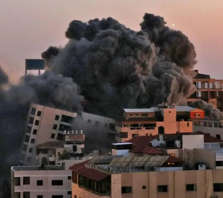 Um ataque aéreo israelense derrubou na terça-feira (11) um prédio de doze andares situado na Faixa de Gaza, no qual têm escritórios altos comandos do movimento Hamas. Os ataques até a manhã de hoje (12), deixaram pelo menos 50 mortos e provocam o temor de uma "guerra em larga escala", informaram repórteres da AFP.