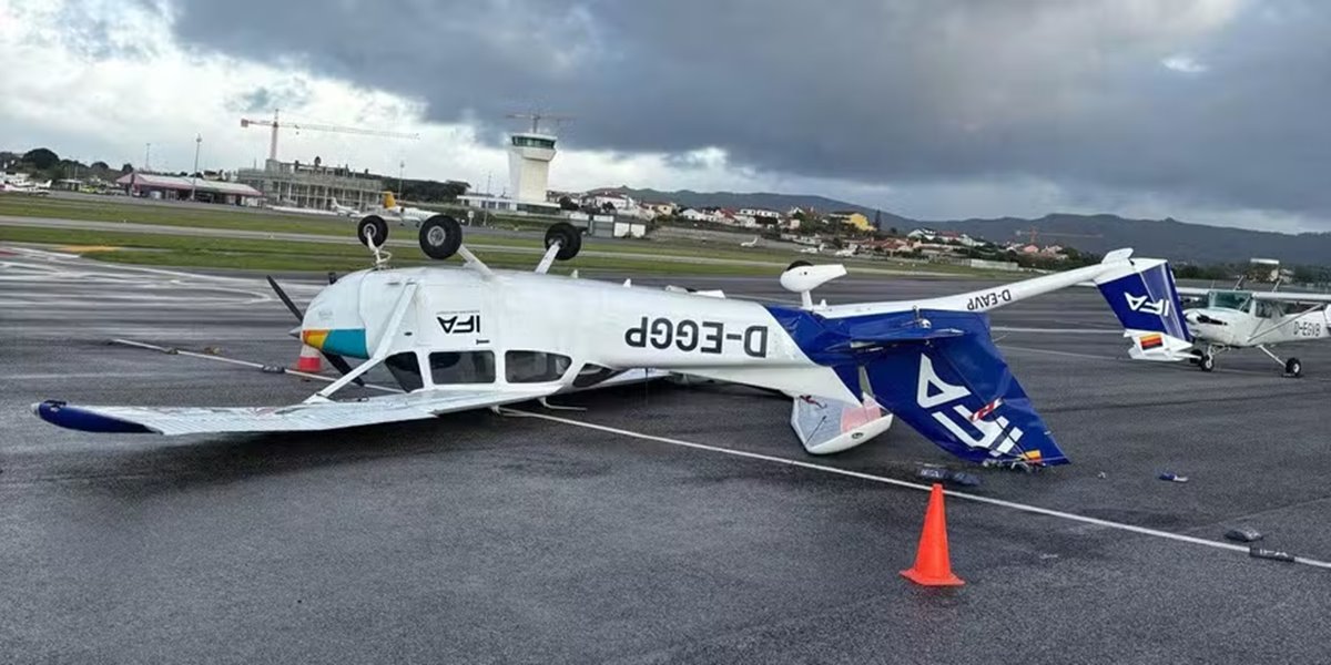 Imagens enviadas à página "Meteo Trás os Montes" e compartilhadas com o Portugal Giro mostram aviões de pequeno porte sendo virados pelo vento em Tires, sem feridos. Dois dos aviões seriam de uma escola de aviação e o terceiro, particular.
