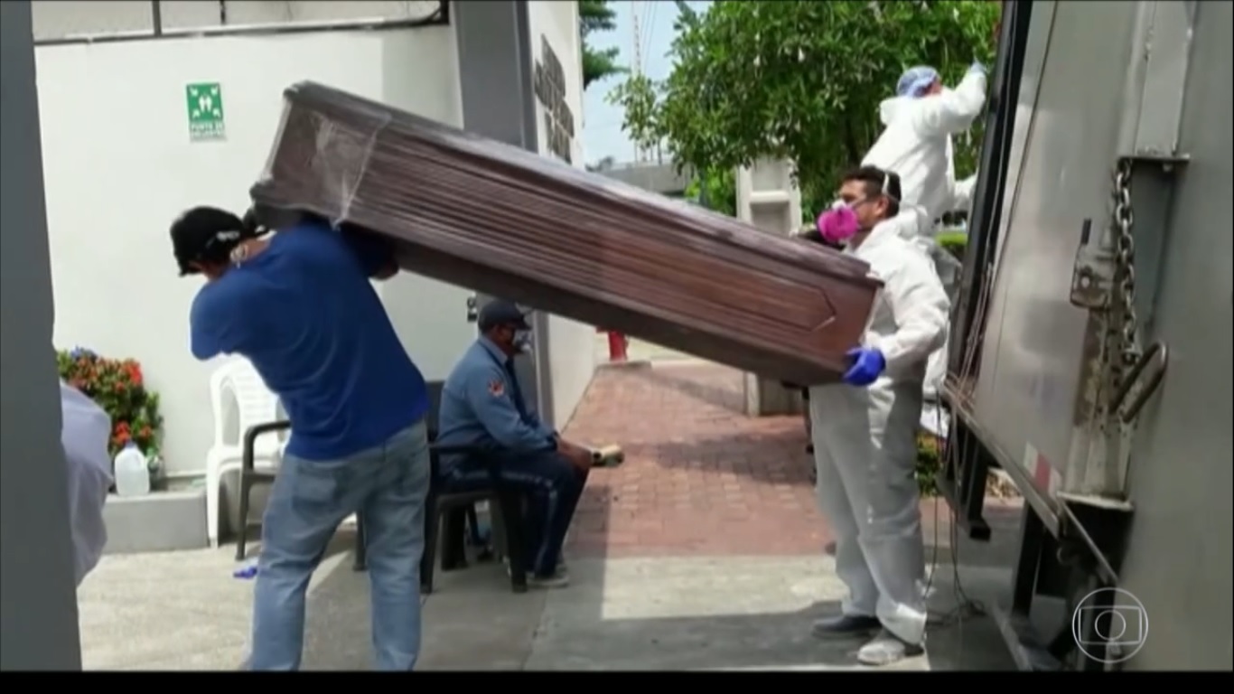 O Equador, que tem uma população de 17,5 milhões de pessoas, registra quase 30.300 casos, incluindo 1.654 mortes. As autoridades também relatam mais 1.705 mortes suspeitas.
