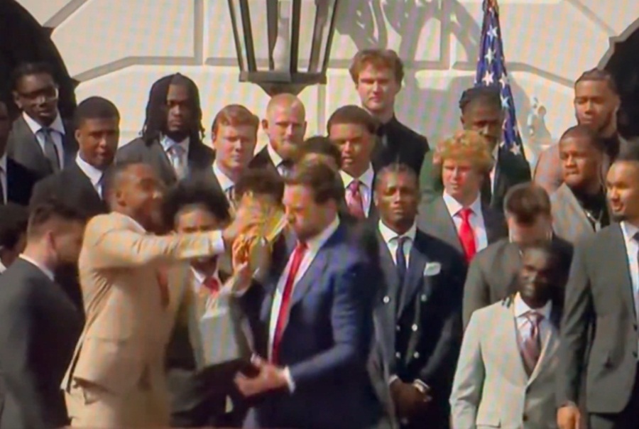 A situação gerou certo constrangimento, mas foi rapidamente contornada por auxiliares presentes. O próprio Vance recolheu a base do chão e, na sequência, ergueu a parte superior do troféu ao lado de Trump e dos atletas da universidade, que riram da situação com bom humor.