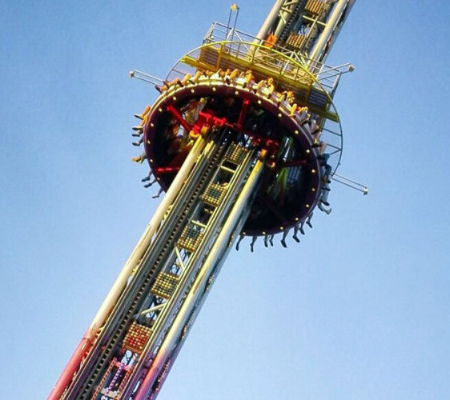 No momento em que ganhava velocidade, o eixo principal do brinquedo chamado Discovery se rompeu no meio, lançando metade da estrutura carregada de pessoas ao chão.