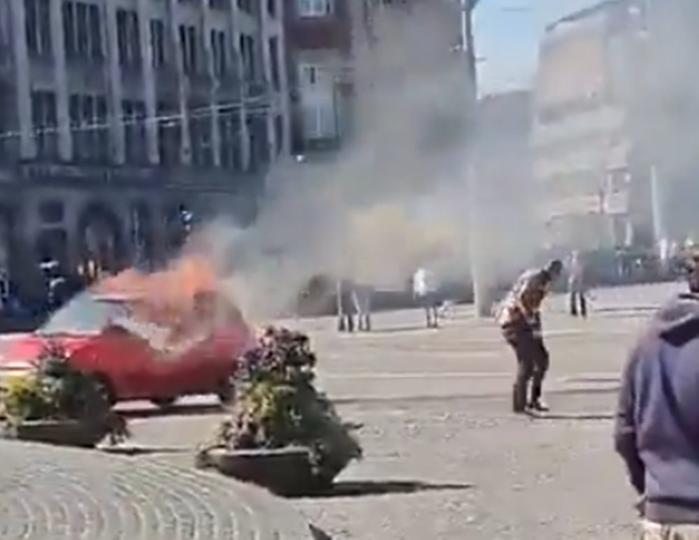 Um carro pegou fogo no meio da praça Dam, em Amsterdam, na Holanda, nesta quinta-feira (3). O motorista, que estava dentro do veículo, conseguiu sair antes que as chamas se alastrassem.