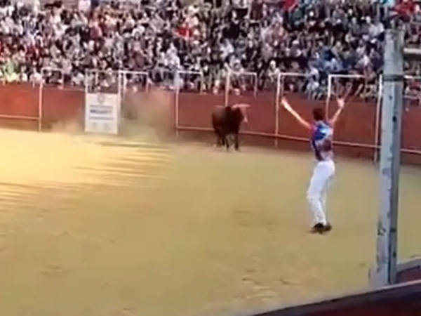 As imagens compartilhadas nas redes sociais mostram que o trabalhador tenta fugir entre as cercas portáteis, mas o touro invade o beco. Neste momento, gritos são ouvidos quando o animal atinge o homem e a cerca ao mesmo tempo. Assista no vídeo abaixo.