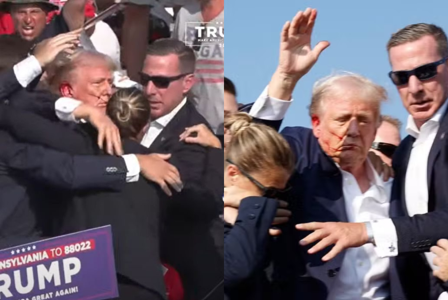 Ao se levantar, Trump parecia ter um pouco de sangue na orelha direita, na bochecha e nas mãos. Ele então ergueu o punho, em um gesto para demonstrar força, enquanto o público ao seu redor gritava "USA! USA!" (sigla em inglês para EUA). O porta-voz de campanha do republicano, Steven Cheung, disse que ele está bem e sendo examinado. Ele também afirmou que o ex-presidente agradeceu a ação rápida das forças de segurança.