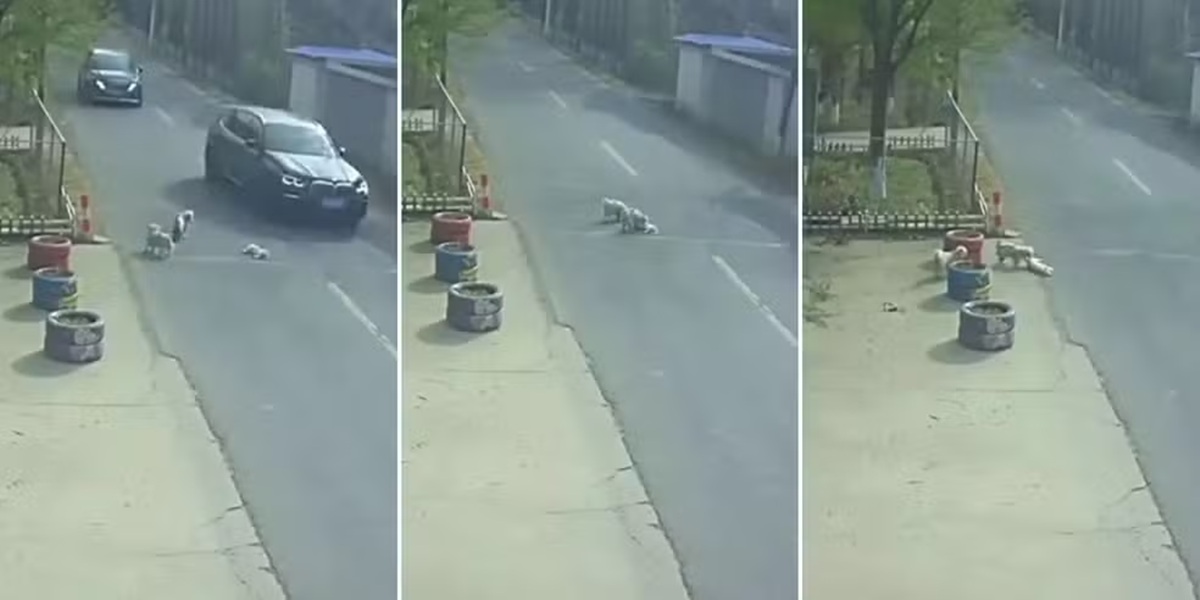 Um cachorrinho foi salvo por dois vira-latas após ser atropelado ao fugir de sua casa na China. O momento heroico, registrado por uma câmera de segurança, viralizou nas redes sociais.