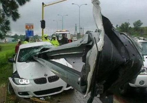 O ferro entrou pela traseira do veículo e atravessou até sair pelo para-brisas, destruindo tudo. O mais impressionante é que Rooi Mahamutsa teve apenas ferimentos leves e chegou a ser levado ao hospital, mas logo foi liberado.