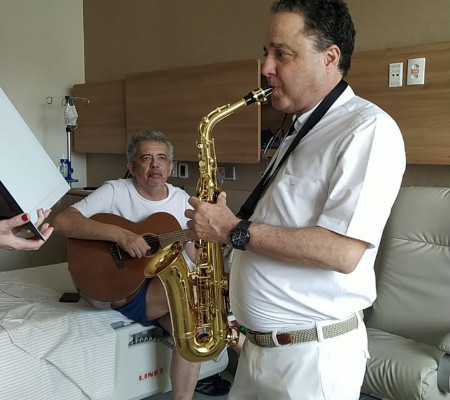 O jornalista piauiense Álvaro Luís Carneiro segue internado em São Paulo (SP) onde recebe alta na manhã dessa sexta-feira (30). Na tarde de hoje ele foi surpreendido pelo médico que o atende, Roberto Kalil Filho, que, durante a visita clínica, entrou no quarto com um saxofone e convidou o paciente a lhe acompanhar ao violão em duas canções: Michelle, de Lennon&McCartney e A Paz, de Gilberto Gil.