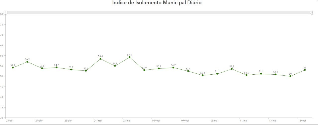 Ainda que tenha havido o aumento, o percentual está abaixo dos 73% recomendados pelos órgãos de saúde para evitar uma proliferação em massa do novo coronavírus. “Os números de isolamento social das últimas semanas são baixos e insuficientes para conter o avanço da doença. Infelizmente, a cada dia, mais pessoas estão sendo acometidas pela Covid-19 na nossa cidade. Tivemos a confirmação de mais 57 casos novos de infecção e três óbitos na última sexta-feira”, lamentou o prefeito Firmino Filho.