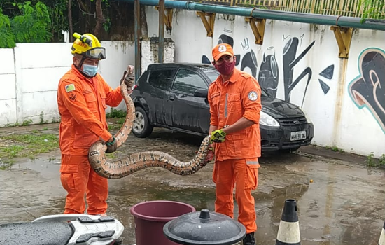 Uma jiboia de quase dois metros foi resgatada pelo Corpo de Bombeiros na manhã desta segunda-feira (07), dentro de uma oficina na Avenida Miguel Rosa, no bairro Piçarra, zona Sul de Teresina.
