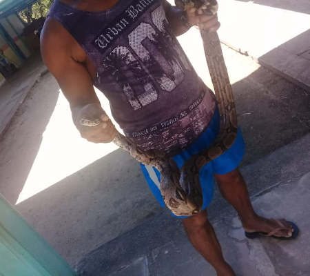 Uma cobra jiboia foi encontrada em um bebedouro da Creche Municipal Maria Dolores Petrola, no Bairro Bom Jardim, em Fortaleza, na segunda-feira (5). Uma equipe do Corpo de Bombeiros foi acionada e fez a captura do animal. Segundo as mães dos alunos, essa não foi a primeira cobra encontrada na escola.