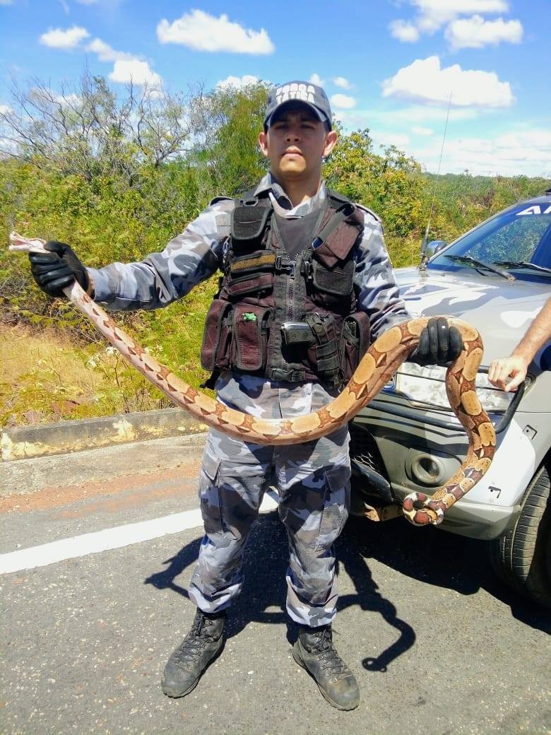 Uma equipe da Força Tática de Valença do Piauí foi acionada no domingo (09) afim de capturar uma cobra jibóia. O réptil se encontrava nas proximidades de residências no bairro Amando Lima. A jibóia foi encontrada por crianças na calçada de uma residência. Após a contenção pela equipe, a cobra foi devolvida ao seu habitat natural. As informações são do Canal 121.